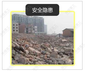 大多數(shù)城市建筑垃圾堆放地的選址在很大程度上具有隨意性,留下不少安全隱患。在外界因素的影響下,堆出現(xiàn)崩塌,阻礙道路甚至沖向其他建筑物的現(xiàn)象時(shí)有發(fā)生。 | 建筑垃圾在堆放和填埋過程中,由于發(fā)酵和雨水的淋溶、沖刷,以及地表水和地下水的浸泡而滲濾出的污水——滲濾液或淋濾液,造成周圍地表水和地下水的嚴(yán)重污染。 | 隨著城市的不斷發(fā)展,大量的建筑垃圾隨意堆放,不僅占用土地,而且污染環(huán)境,并且直接或間接的影響空氣質(zhì)量。 | 隨著城市建筑垃圾量的增加,垃圾堆放點(diǎn)也在增加,而垃圾堆放場的面積也在逐漸擴(kuò)大。 |